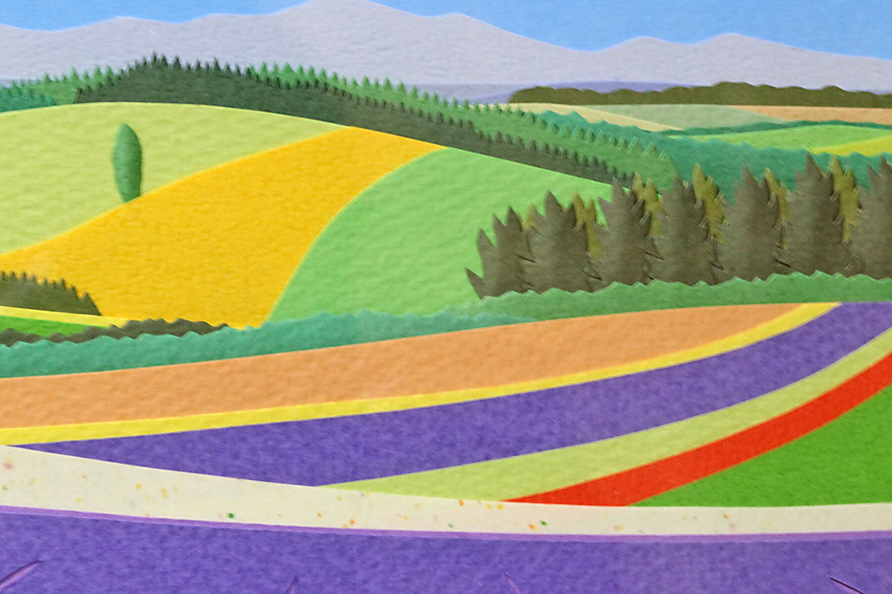 広々とした丘に様々な花によって彩られるパッチワークの丘を表現しました。